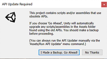 Upon adding the GameDriver assets to your project, the Unity API Updater will attempt to upgrade the libraries.